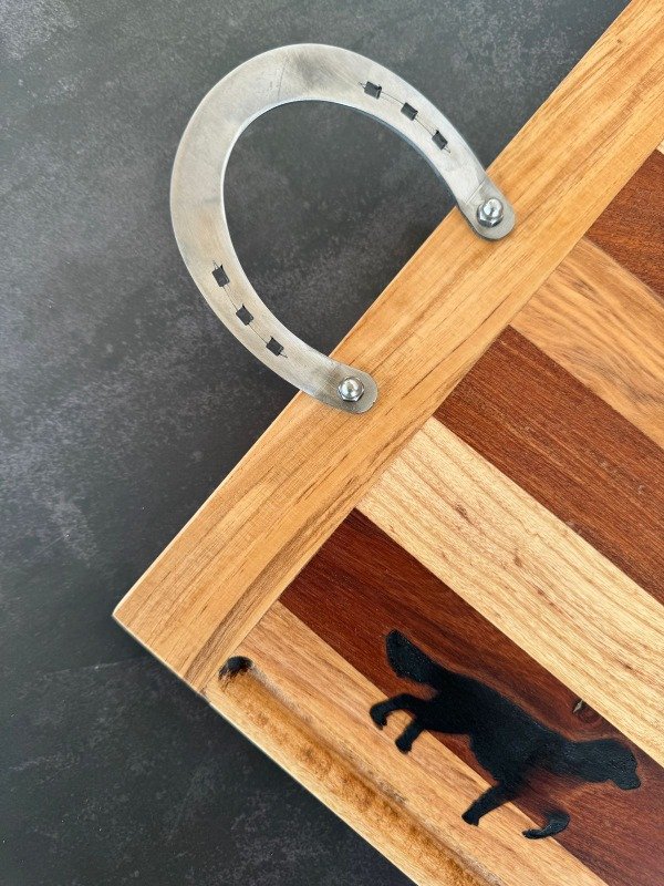 Tabla mix de maderas con herraduras de acero inoxidable 420